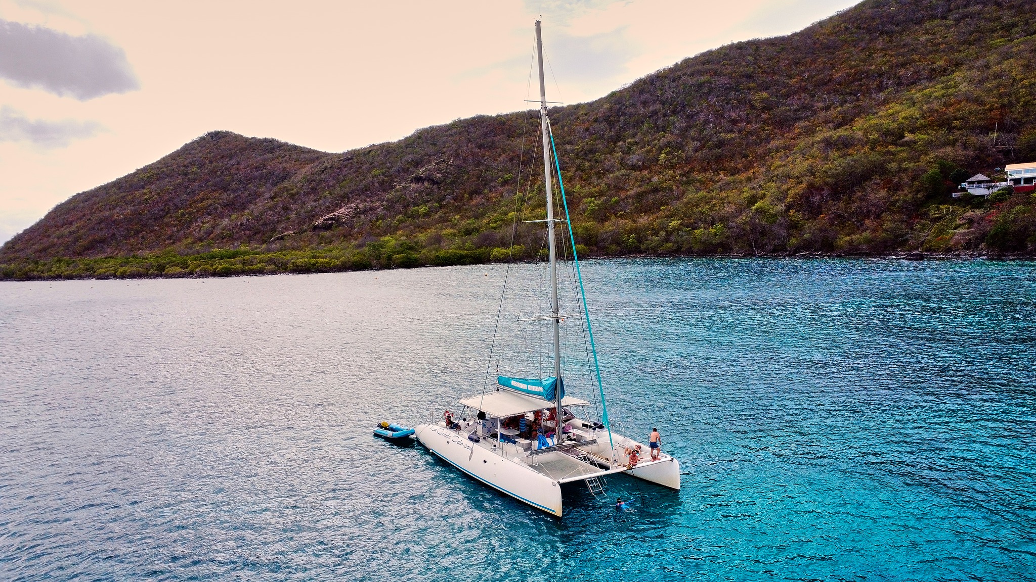 Un équipage expérimenté à vos services pour une aventure hors du commun où chaque instant sera synonyme de plaisir et de découvertes. Repas créole à volonté. Baignade et plongée libre. Vous pouvez également louer ce maxi-catamaran pour vos excursions personnalisées et vos soirées, anniversaire, mariage…Une journée en merLe matin :Cap sur le rocher du Diamant à la voile, peut-être aurez-vous la chance d’être accompagné par les dauphins.Découverte des villages de pêcheurs aux Anses d’Arlets, arrivée sur une plage de sable blanc en fin de matinée. Baignade et plongée libre à volonté.Un vrai repas créole servi à bord, jus de fruits et planteurs DILLON, servis à discrétion toute la journée.L’après-midi :Visite de la grotte aux chauves-souris, arrêt baignade et plongée avec les poissons multicolores.